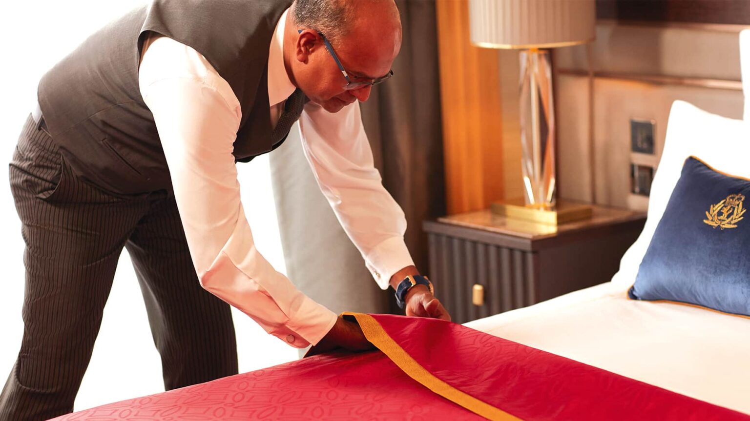 Cunardโs famous White Star service begins from the moment you step on board with your luggage delivered to your stateroom. Champagne or sparkling wine await as you board.
